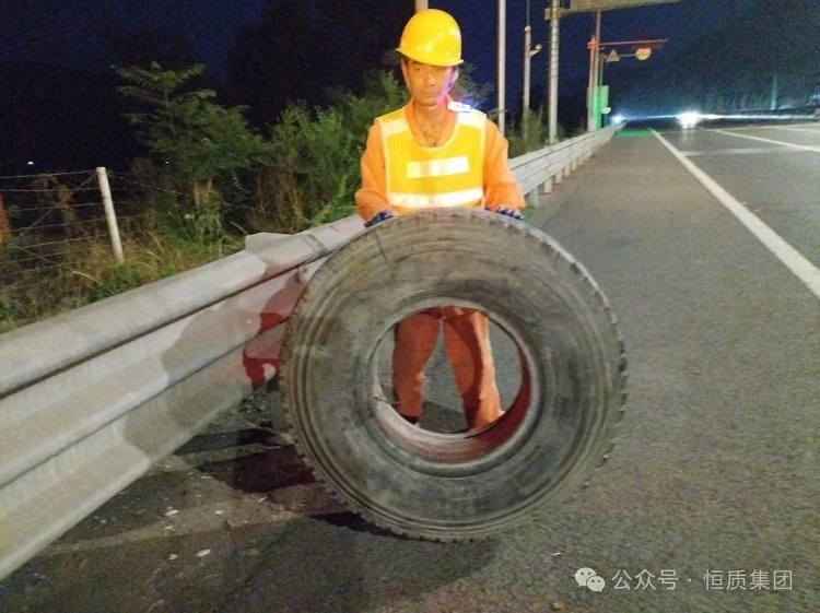 恒質(zhì)集團青蘭養(yǎng)護團隊高效處置遺落輪胎